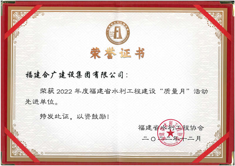 2022福建省水利工程建設(shè)質(zhì)量月活動(dòng)先進(jìn)單位