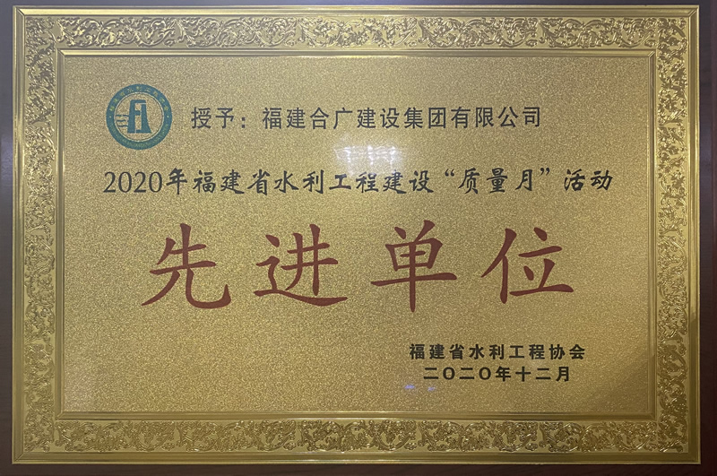 福建合廣建設(shè)集團有限公司2020年費水利工程質(zhì)量月榮譽證書